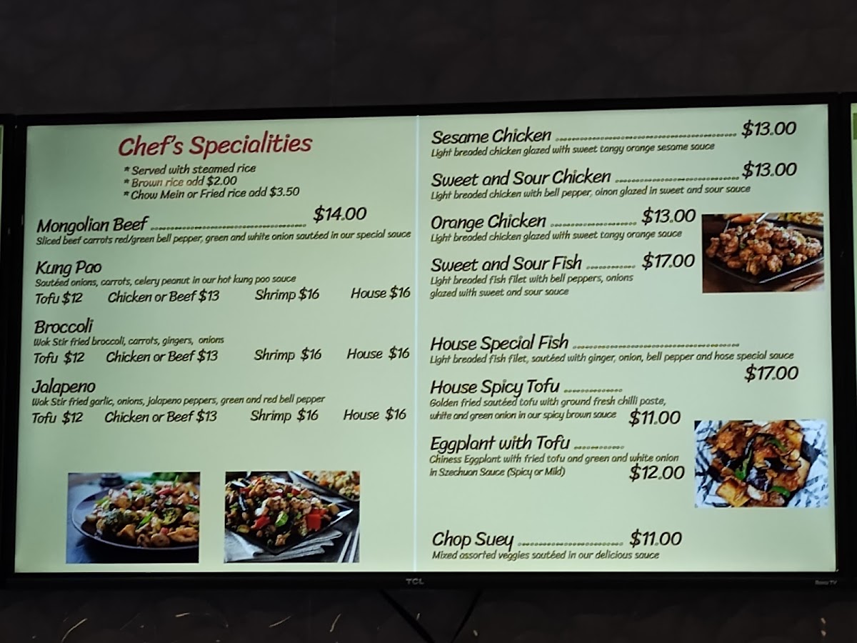 Light breaded fish filet, sautéed with ginger onion, and house special sauce.