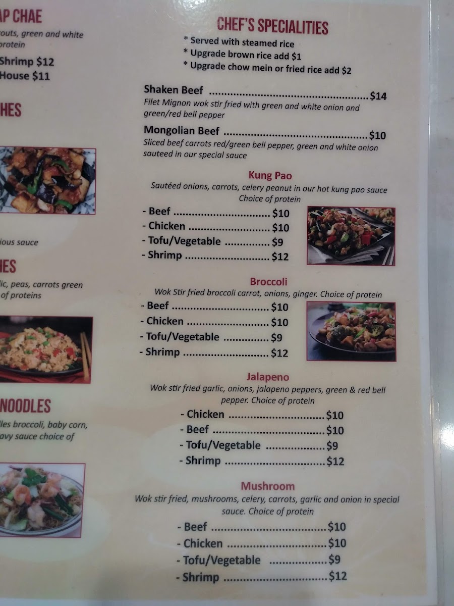 Sliced beef carrots red or green bell pepper, green and white onion sauteed in our special sauce.